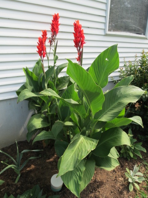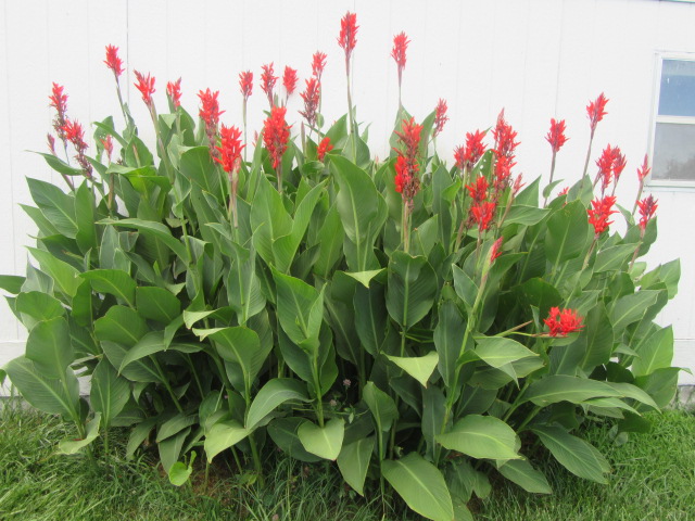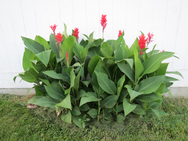 Umm… I had put all the Cannas from the south side of the garage along the north side so they wouldn’t be in the sun during the day. I had no idea how long replanting them would take. They kept growing even though they weren’t even in the ground! It looked like so many now!