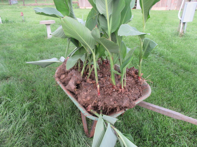 I was NOT happy with the way it was turning out. So, on May 29 I think, I started removing ALL the Cannas out of the bed.