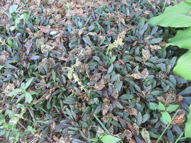 The Ajuga reptans ‘Chocolate Chip’s thought winter was coming and the trees applied a mulch of its leaves… I told them if it was winter in July I was leaving.