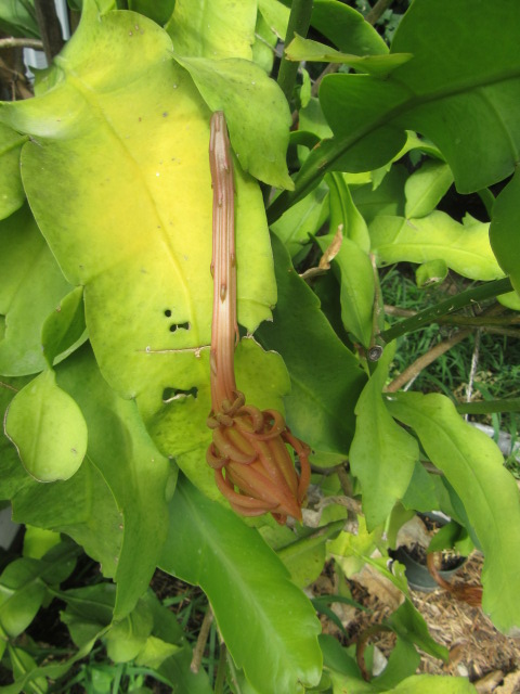 It is an amazing plant for sure, Pixiedeb! I noticed the leaves looked like there are “veins” where the flower comes out. LOL! These plants are “self-sterile” meaning that even though there are male and female parts in every flower, they must be pollinated from a flower from a “different clone”. That means, and this is the tricky part, if you have two plants obtained as cuttings from the same parent, that still makes them the same clone so it won’t work. To get fruit and seeds the two flowers need to be from two different unrelated clones. Personally, I am completely confused how the flower knows… I would say you are right about bats being the pollinator in nature. In cultivation, it is done by hand, which is very simple. Thanks for the comment. 🙂