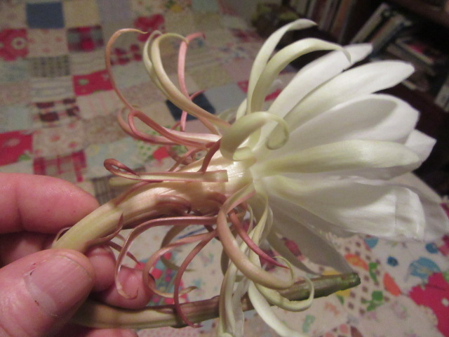 So, I went online and found out the scientific name for this particular Night Blooming Cereus is Epiphyllum oxypetalum. According to Plants of the World Online, they are native to Belize, Costa Rica, El Salvador, Guatemala, Honduras, Mexico Gulf, Southeast and Southwest Mexico, and Nicaragua. They were later introduced to Northeast Brazil, South and Southeast Brazil, Cuba, Dominican Republic, Leeward Island, Puerto Rico, Venezuelan Antilles, and Windward Island.