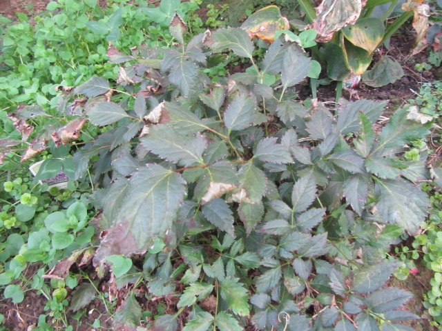The Hosta ‘Red October’ never quite recovered from its issue with the mole run in the other bed this spring. I put them in two different locations but will put them back together this spring.