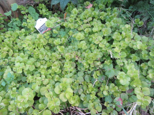 The Lysimachia nummularia ‘Goldilocks’ (Creeping Jenny) had a great summer and spread even more. It spread clear up to the front of the steps! It seems to do much better in more sun even though I keep telling it to spread more in the shade. It just won’t listen!