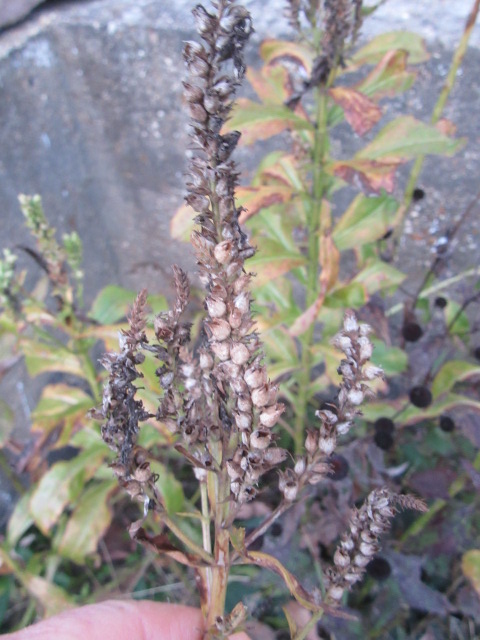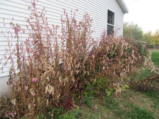 The south bed has certainly seen better days. The Celosia argentea var. spicata ‘Cramer’s Amazon’ had another successful summer. Now it can drop THOUSANDS of seeds for next spring… If you would like some seed, just ask… I have to send some to Raphael Goverts, senior content editor at Kew, so you just as well have some, too. He asked for some seed and I am happy to send them. Once they grow, I hope it encourages them to re-evaluate and change the name back to Celosia spicata instead of saying it is a Celosia argentea… At least include the infraspecific name Celosia argentea var. spicata as a legitimate name. Whether that happens or not, I am calling it that anyway. 🙂 Nuff said… (for now). Well, it is totally impossible for Celosia spicata to be a synonym of Deeringia spicata!