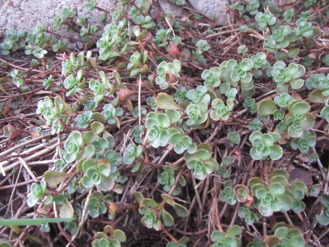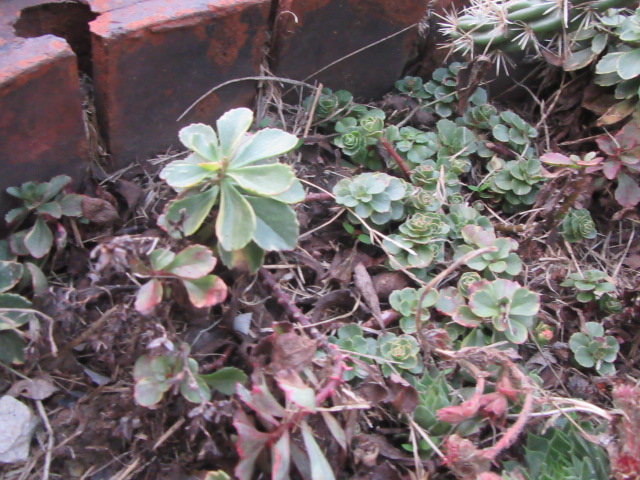 This Sedum spurium, maybe ‘Dragon’s Blood’ keeps its leaves most of the winter. It was unnamed when I brought it home but I am 99.9% sure it is a Sedum spurium but only 40% sure it is ‘Dragon’s Blood’.