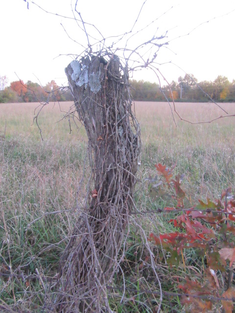 Not sure why I took this photo of an old hedge post (Osage Orange) covered with dead Virginia Creeper.