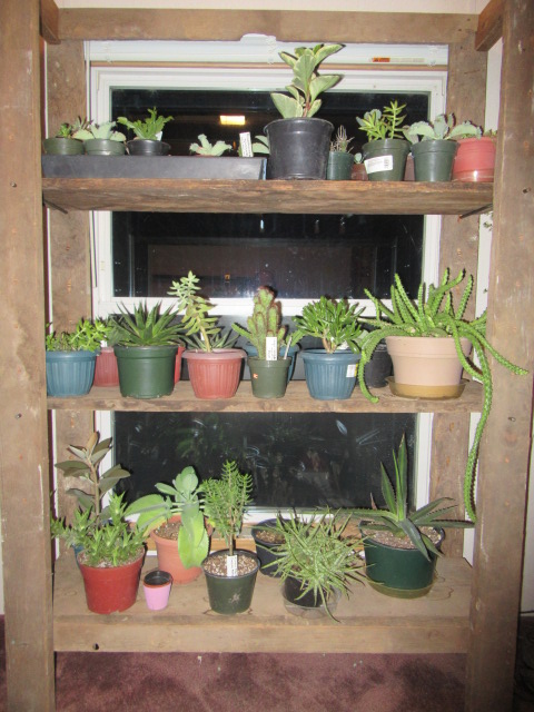 For the most part, all the succulents are on this shelf plus a few cacti.