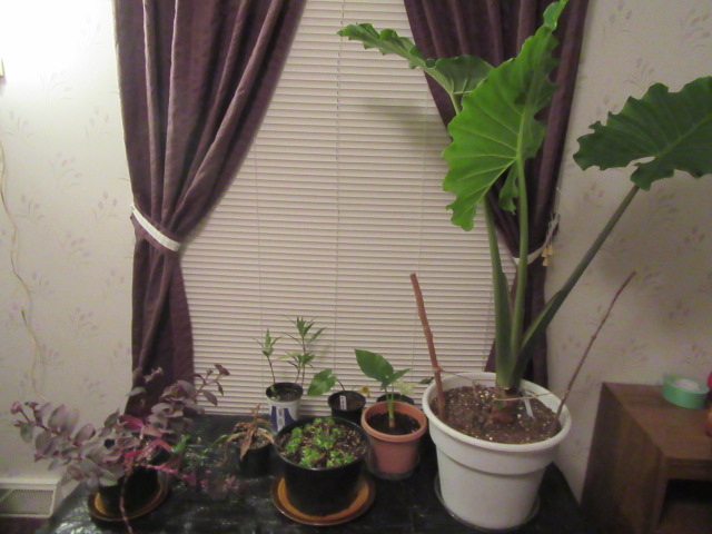 My ‘handful’ of outdoor plants are finished. I cleared most of the little garden of dead tomato plants. The milkweed stalks are gone. Indoors I need to repot some violets and an ivy.