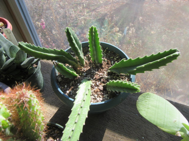 The new Stapelia gigantea is also doing very well. This plant is a cousin to the Huernia and both are Carrion Plants. Even though this one will have big and beautiful flowers, the smell will be less than pleasant…
