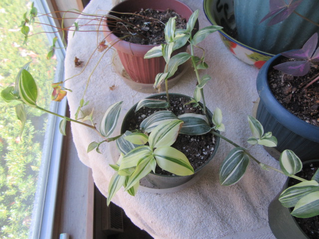 The Tradescantia zebrina will be staying upstairs for now. It is my first winter with them so I am not sure how they will do either upstairs or down in the basement. I know they will do OK upstairs but I am not sure about a stretching issue. If they go dormant in the basement… Will they come back up or will they be dead. Maybe I should take cuttings and experiment. 🙂 How else will I know?