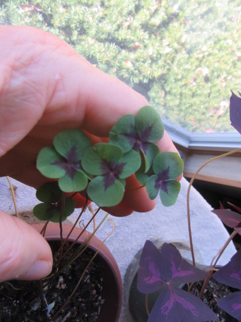 The Oxalis tetraphylla (Iron Cross) leaves aren’t so big right now… The bigger leaves died and the new leaves are small. Weird…