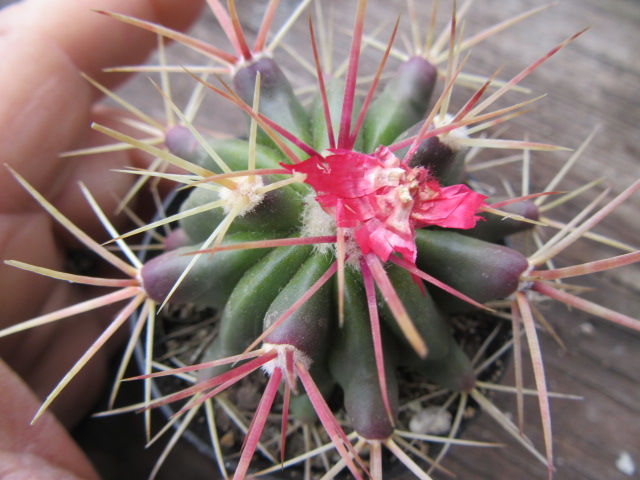 This plant is very small but in the wild they grow HUGE and are very long-lived (up to 130 years). They have a tendency to lean south toward the equator which apparently led to one of its common names, Compass Barrel Cactus.