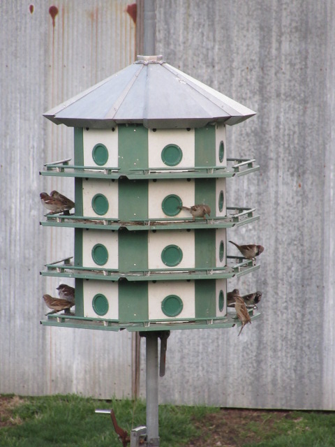 I finally cleaned out the Martin house and gave the sparrows their eviction notice. Susie is patiently waiting for a few of them to get into a squabble and forget she is there. I kind of felt sorry for the sparrows over the winter when it was cold so I let them use the house. Soon the Martins will arrive so the sparrows will have to find other accommodations.