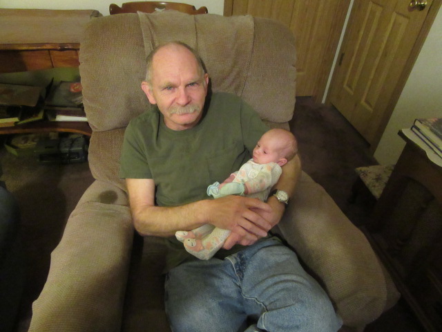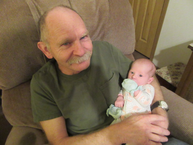 Hello everyone! I hope this post finds you well. My daughter and her family came up for a visit this afternoon (Saturday). I finally got to see my new granddaughter, Allison, in person. This first photo is priceless. It is like she is saying, “Who is that old fart?”