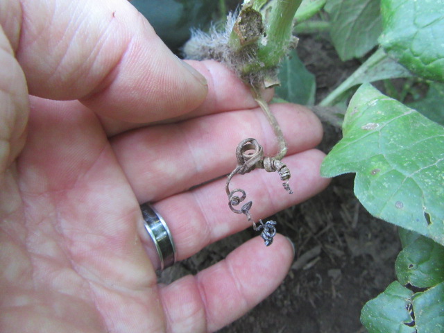 Dried tendril on a ‘Black Diamond’ Watermelon on July 26… About 56 days after emergence and at least 34 days to maturity…