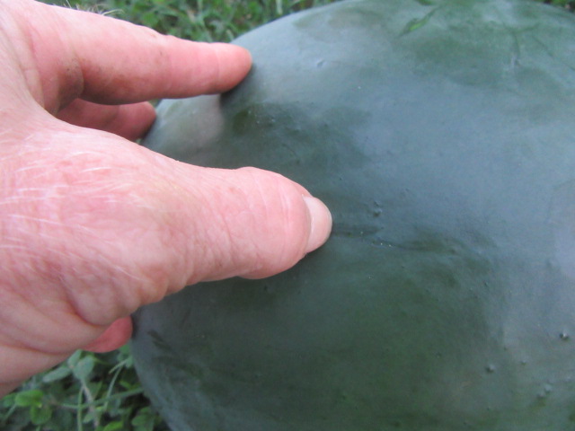 3) THE SCRATCH TEST:  Watermelon rinds get harder as the melons mature. If you can scratch the surface easily, it isn’t ready.