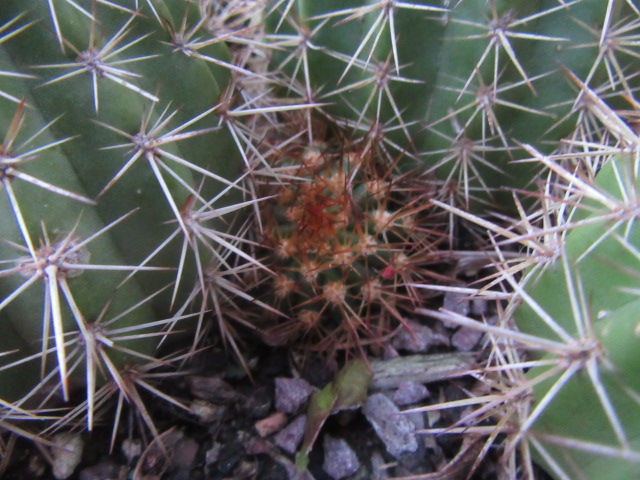 These spiny guys always show a little color on their heads but their spines are whiteish. The species has smaller spines and are more yellow. Plants of the World Online listed “var. albispinus” as a synonym mainly because the variety name was invalidly published in 1981. When you sit the different varieties of a species together you can definitely tell there are differences which should be recognized with different variety names. Just makes sense but they didn’t ask me… I have had this discussion with “the guy” and I am told I can call them what I choose. GEEZ!!! Are there no rules? 🙂 Maybe I better check the link on the page for this plant to see if the intraspecific name is accepted yet…