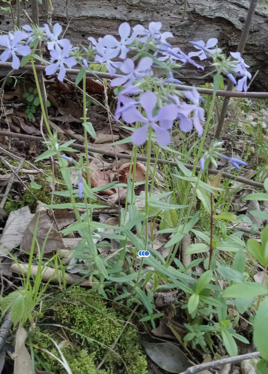 There were also a lot of Phlox divaricata (Wild Blue Phlox) in bloom. Found this particularly nice clump along the fence above the creek. You have to crawl through the fence to get to the hillside.