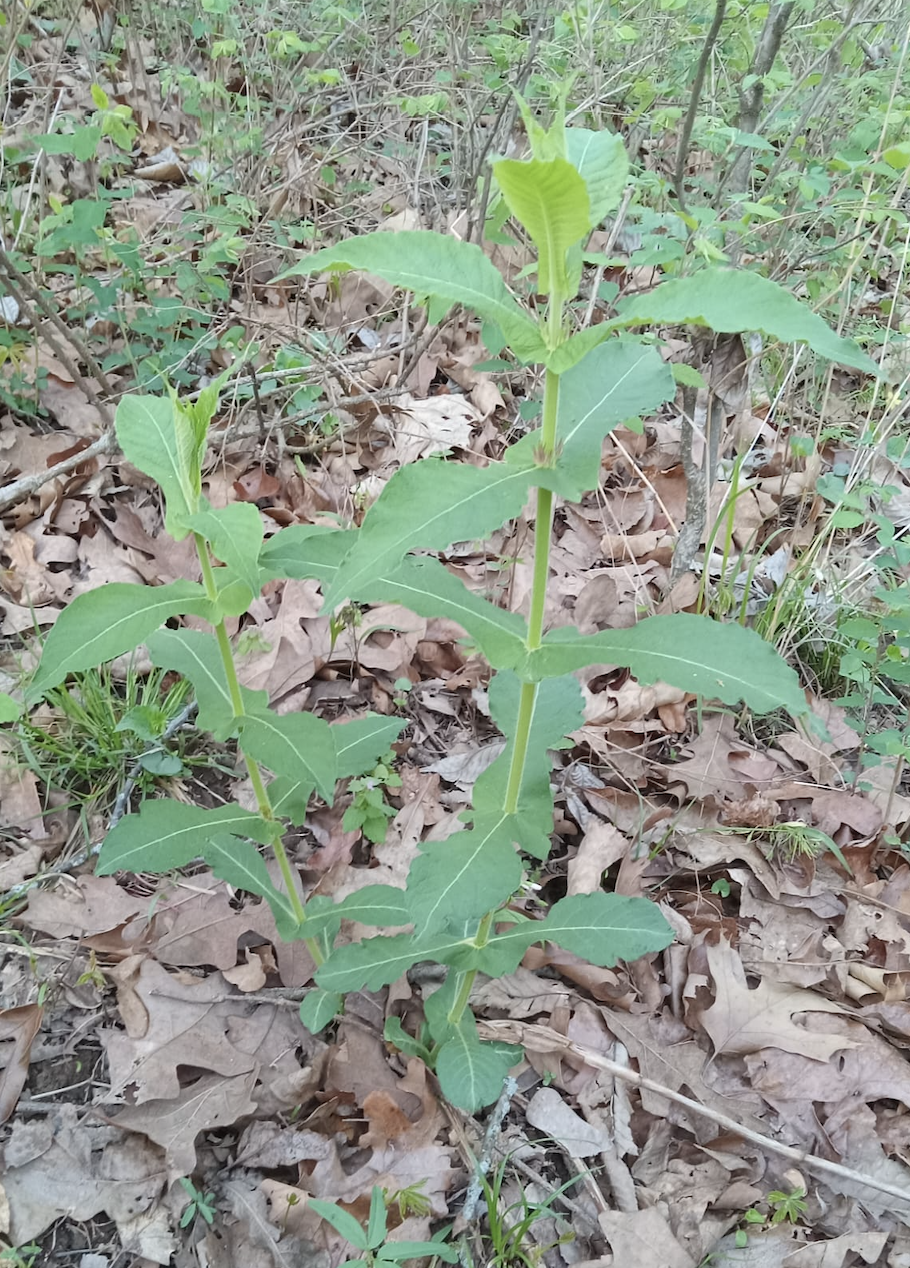 One of my favorite plants in Kevin’s woods is the Triosteum perfoliatum (Perfoliate Tinker’s Weed) and I managed to find it where it always is. I was excited to see it has two stems instead of just one this year!