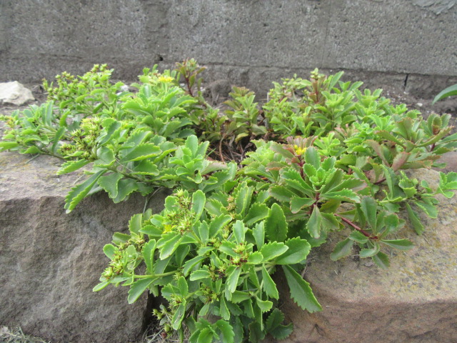 The Sedum spurium ‘John Creech’ is still doing awesomely well stuck in its little corner. It wants to spread out more so it can strut its stuff and is trying desperately to move into other territories. Friedrich August Marschall von Bieberstein named and described this species in Flora Taurico-Caucasica in 1808 but it is also one of the species in the debate. Henk ’t Hart described it as Phedimus spurius in Evolution and Systematics of the Crassulaceae in 1995.