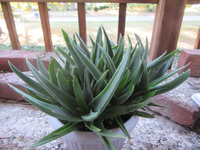 This Aloe x ‘Lizard Lips’ has done very well over the summer. In 2014, I gave up most of my plants including my first Aloe x ‘Lizard Lips’ I had bought in 2009. Luckily, I had given Mrs. Wagler of Wagler’s greenhouse a start, so in 2016 she gave me one back. It now measures 4 1/2″ tall x 10″ wide. It did well in my bedroom window last winter, so I guess I will put it there again for this winter.