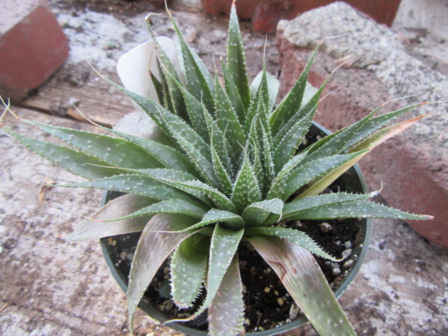 The Aristaloe aristata (Lace Aloe) has been on the kitchen windowsill for I’m not sure how long. It was looking like it was in need of fresh air, so I put it on the front porch with the rest of the potted plants when temps warmed up enough. I like this plant, but sometimes I think it is a little finicky…