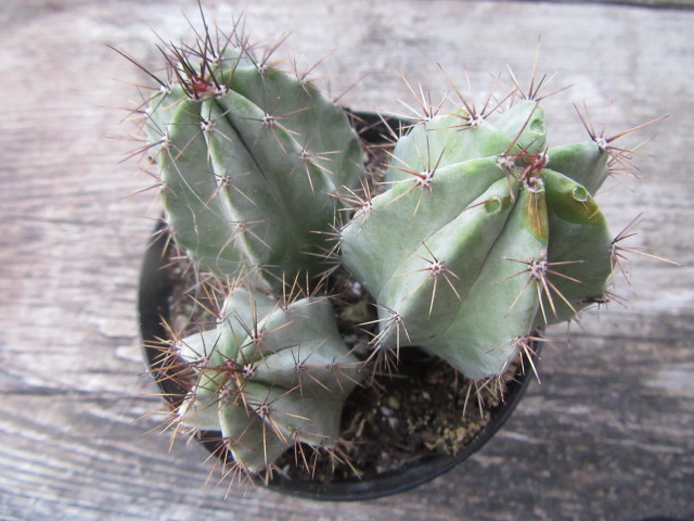 Then, of course, there is the Stenocereus pruinosus (Gray Ghost, Organ Pipe, Pitayo de Octubre, Pitaya). I also bought this cactus from Wal-Mart on February 1, 2016, and it measured 2 7/8″ tall x 2 3/4″ wide. Now it measures 3 3/4″ tall x 2 3/4″ wide, so it grew taller but not wider. This plant was mislabeled Lemaireocereus pruinosus, which is what it was named way back in in 1920 by Nathaniel Lord Britton and Joseph Nelson Rose. Umm, FIRST it was named Echinocactus pruinosus by Christoph Friedrich Otto and Louis K. G. Pfeiffer in 1837. Then Mr. Otto shortened it to Cereus pruinosus in 1846. Then it was named Lemaireocerus pruinosus in 1920 like I already mentioned. THEN, Sten0cereus pruinosus by Franz Buxbaum in 1961 (which is now the accepted name). But, it was also named Rathbunia pruinosa by Paul V. Heath in 1992 when he attempted to create a new genus. Alessandro Guiggi also attempted a new genus and named it Griseocereus pruinosus in 2012. BUT, Stenocereus pruinosus won.