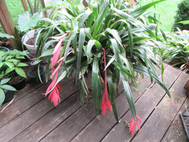 To say the Selenicereus anthonyanus (Fish Bone Cactus) has grown would be an understatement! It only has two leaves sticking out of the pot when I brought it home from Wagler’s Greenhouse in June of 2012. It spent the winter on the kitchen windowsill and continued to grow.