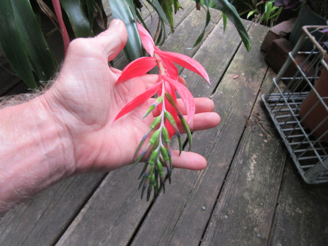 When I went to Mast’s on July 3, I walked back to see his daughters collection of plants. A few of her Kleinia stapeliiformis had flowers and seeds. I didn’t have my camera, so I took a few photos with my phone (yeah, I have a cell phone now) but they didn’t come out good. I did get to visit with her and told her I would bring her some Alocasia and the baby Amorphophallus konjac. I guess I should find out her name…