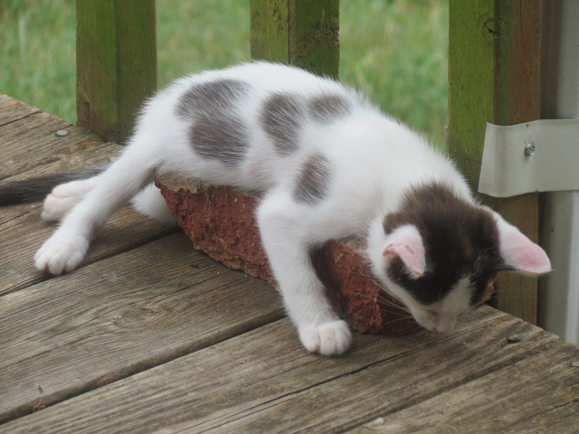 I forgot to take a photo of its leaf before, so I looked under some of the leaves to see if I could find a bigger one. I think they just keep growing as the summer progresses. It appears to be more green in the center, perhaps because it has been out of the sun… Hmmm… Well, I may have to do a re-take…