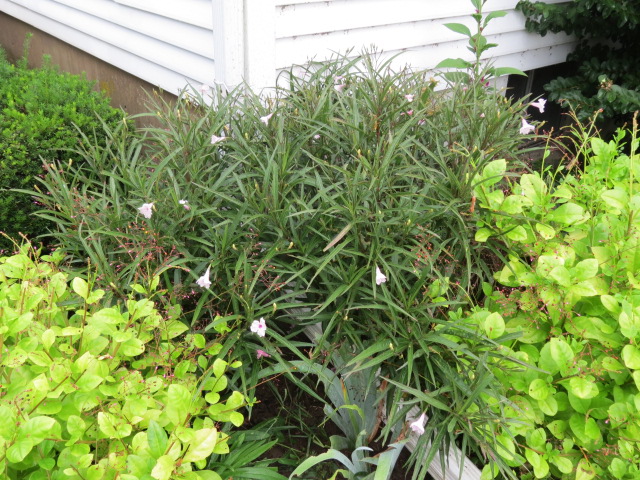 The plants on the right and left of the Mexican petunia are Talinum paniculatum (Jewels of Opar) which were also given to me by Walley Morse.
