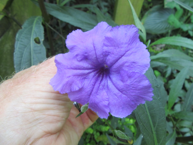 A very interesting point I must make… The leaves on the Ruellia simplex Mrs. Waglar gave me are much larger than the plants from Mississippi. Nor are these leaves “puckered”.