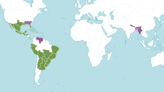 Distribution map of Ruellia simplex from Plants of the World Online. Facilitated by the Royal Botanic Gardens, Kew. Published on the Internet; http://www.plantsoftheworldonline.org/. Retrieved on October 19, 2023.