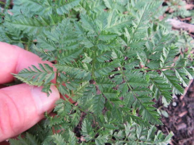 Another feature is their pinnately compound leaves. The basal (lower) and lower stem leaves are 3-4 times compound, have long petioles (leaf stems), with somewhat inflated sheaths.