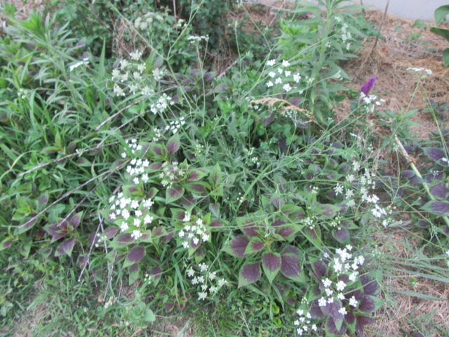 The foliage of young Torilis arvensis and T. japonica can be mistaken for a few similar-looking species, but around here, they grow just about everywhere so I am pretty used to it. They have nice-looking foliage, but once they start to flower they get yanked up. Even so, there are plenty that escape being pulled up to go to seed…