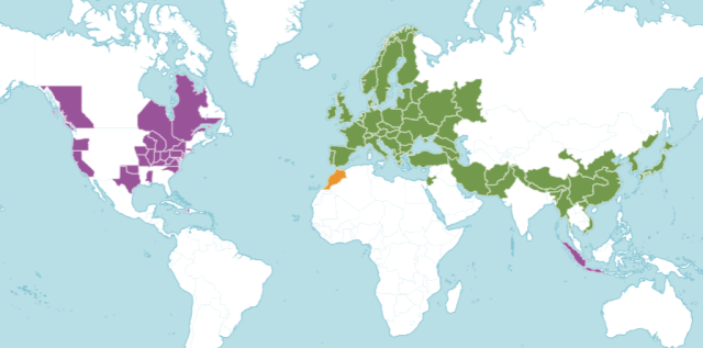 The above distribution map above for Torilis japonica is from the Plants of the World Online. Areas in green are where the species is native, purple where it has been introduced, and gold where it is unlikely… The map on the USDA Plants Database for North America (above Mexico) is similar.