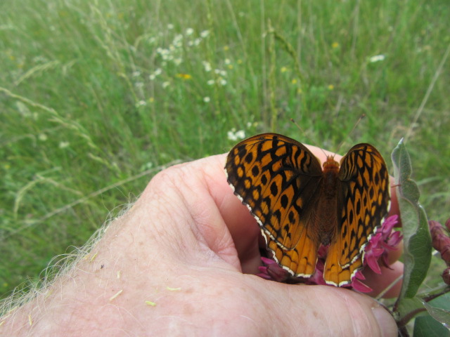 While I was taking photos this magnificent Argynnis cybele (Great Spangled Fritillary) flew in for a visit.