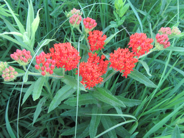I always like the bright reddish-orange flowers of the Butterfly Weed. There aren’t any growing on my farm and they really aren’t as common in my neck of the woods as other Milkweed. In 2013, I was surprised to see a small colony growing in a neighbor’s pasture in the back of the farm. Well, of course, I climbed over the fence. They are growing hit-and-miss in areas along a few highways I travel on but I had never stopped for photos.