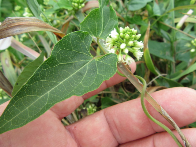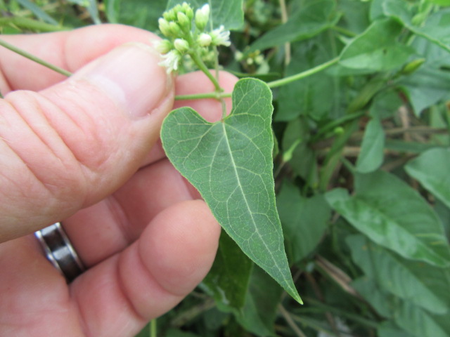 Cynanchum laeve is a native perennial fine in the plant family Apocynaceae (Milkweeds). It is found throughout much of Missouri and common to scattered from the central part of the U.S. eastward and up into Canada. This species can be identified by its vining habit, fairly long heart-shaped leaves, and clusters of small aromatic flowers.