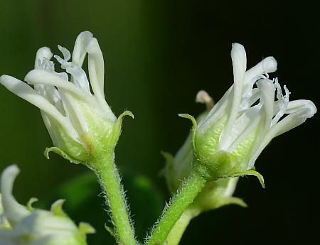 Clusters of 5-40 flowers grow from 1-3” long peduncles from the axils of the leaves. These peduncles are fairly hairy (pubescent).