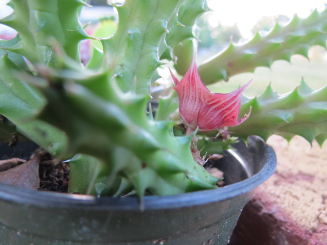 Unfortunately, before my first plant could flower, I gave up most of my potted plants. I went back to Wagler’s in 2015 and picked up a few plants including my second Huernia schneideriana. Remember, I STILL didn’t know the name because I was WAITING for flowers. Needless to say, the second pot was much smaller than the first one.
