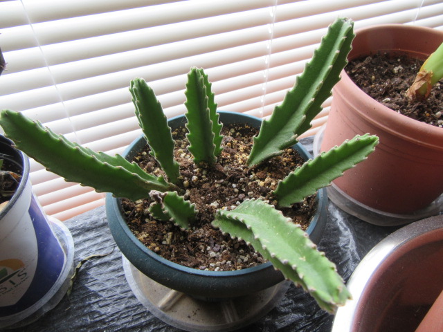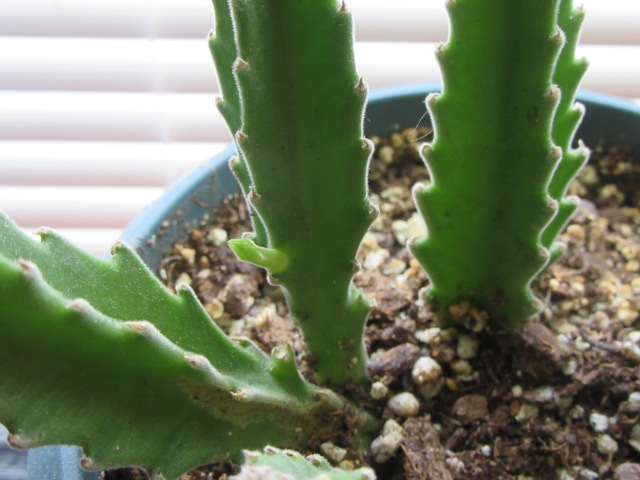 I put all seven cuttings in the same pot on October 10. The next day I had to move all the potted plants inside for the winter so I put the Stapelia gigantea in my bedroom in a west-facing window.