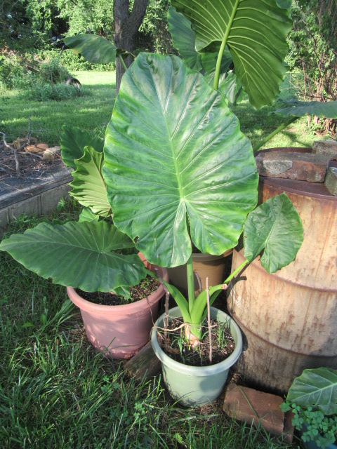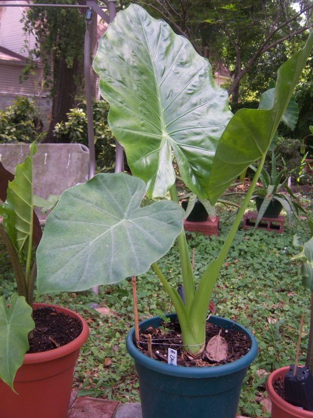 Alocasia ‘Calidora’ from Wellspring Gardens on 4-15-12, #86-6. (Already in a different pot in this photo)