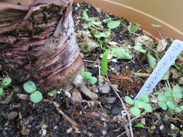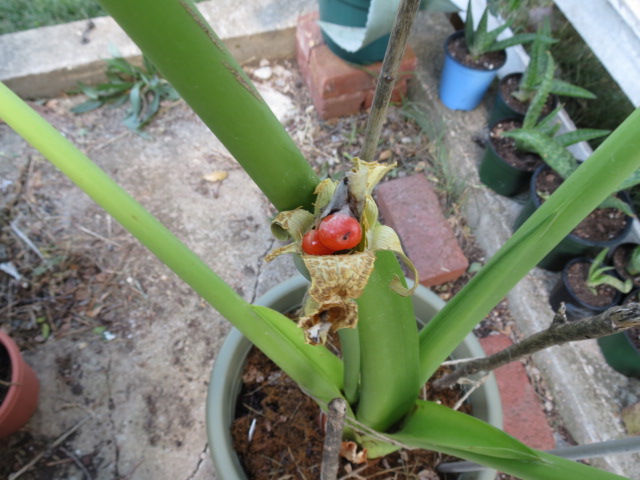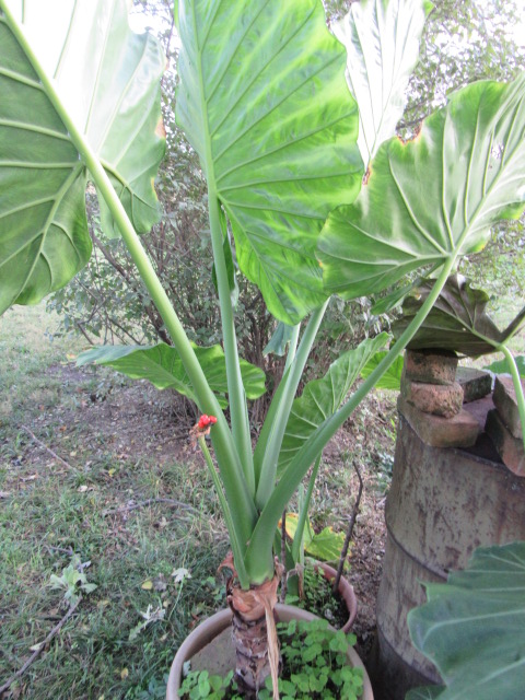 The above photo shows the seeds from the flower of Alocasia ‘Calidora’ on 9-2-13.