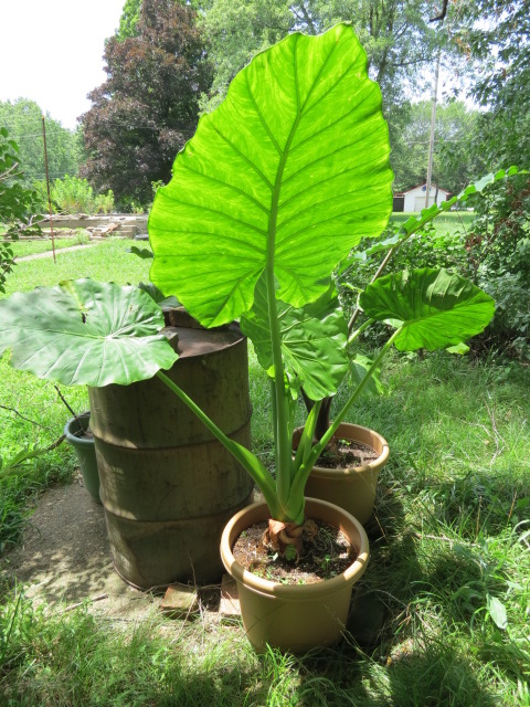 When I moved back to the farm in February 2013, I took most of my Alocasia with me, including the Alocasia ‘Calidora’. It made the 8-9 hour ride in a trailer in 30-degree temps just fine. I put the Alocasia and the other plants I brought in the basement where most of them did just fine.