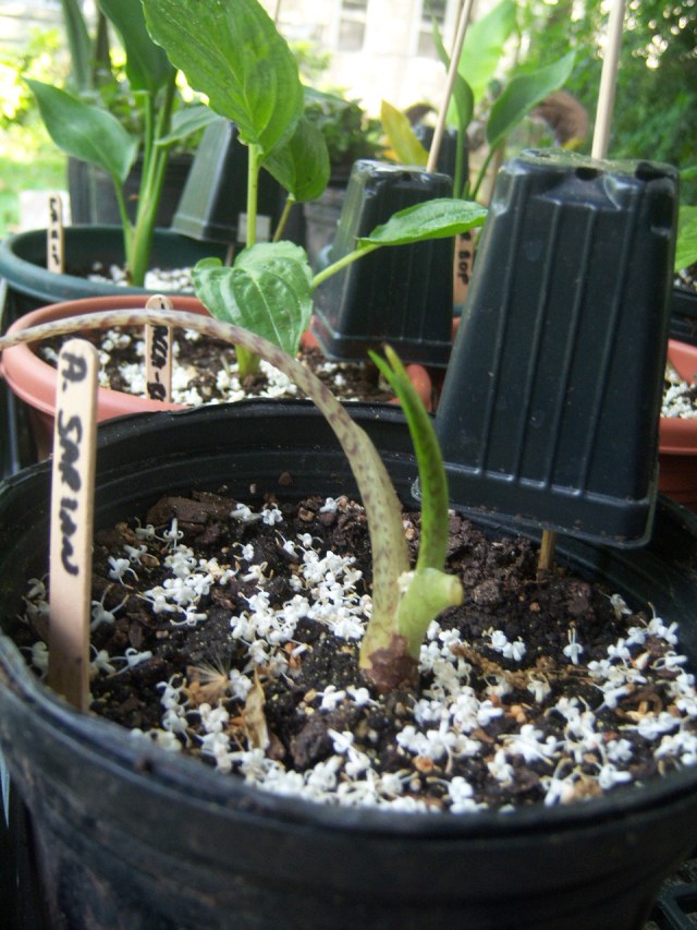 I bought my Alocasia ‘Sarian’ from Wellspring Gardens in the spring of 2012. I thought it was odd how I bought many plants and ‘Sarian’ arrived with a stub of a petiole and one leaf barely starting. Despite this, it survived and did just fine.