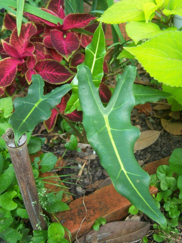 Alocasia ‘Sarian’ on 6-2-12, #95-11. I decided to put it in the ground.