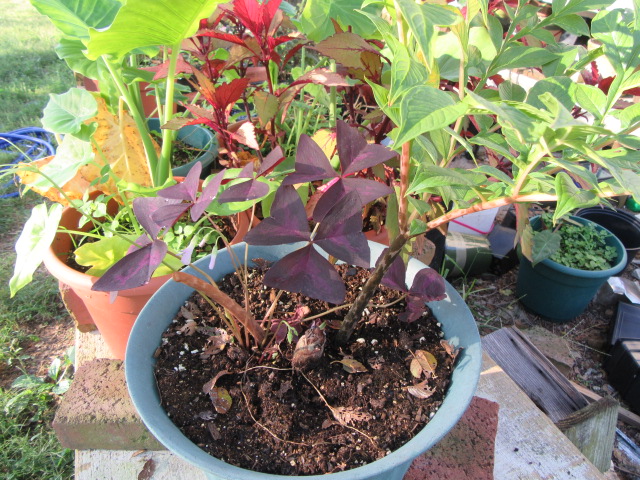 I also left the Oxalis triangularis subsp. papilionaceae in the pot where it had always been.