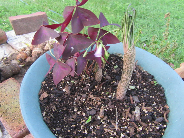 The smaller rhizomes came up and did great so I took them to Wagler’s Greenhouse. I somehow missed a small rhizome and it has come up in the larger pot of Oxalis…