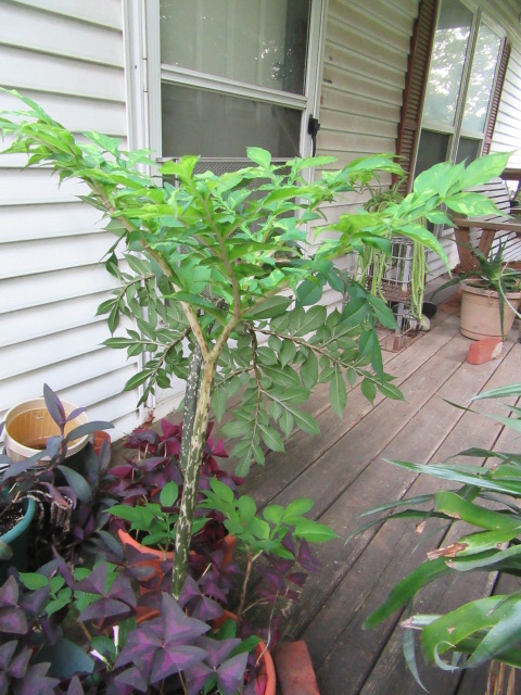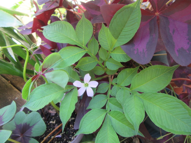 The two larger Amorphophallus konjac came up again in 2020 but still NO flowers. I keep saying need to remove the two larger bulbs and put them in separate pots but I still haven’t done that. The Oxalis triangularis subsp. papilionaceae is also doing very well. It doesn’t even go dormant during the winter as long s I water it a little.
